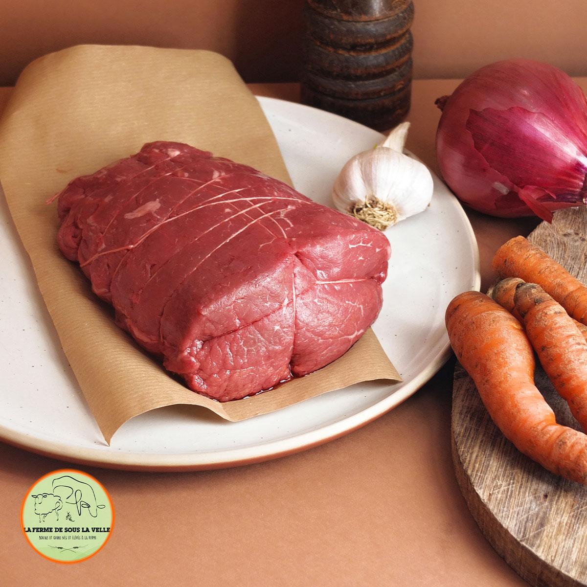 Rosbeef Rond de Paris (viande charolaise, conditionnée sous vide). Boeuf né et élevé à la ferme à Beurey-Beauguay, au coeur de l'Auxois.